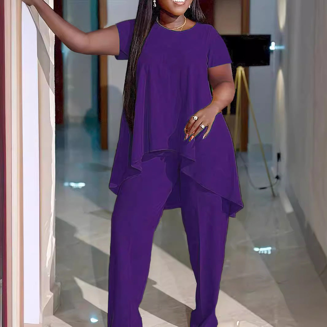 Plus Size Woomen Solid Color Summer Cusual Pant Set