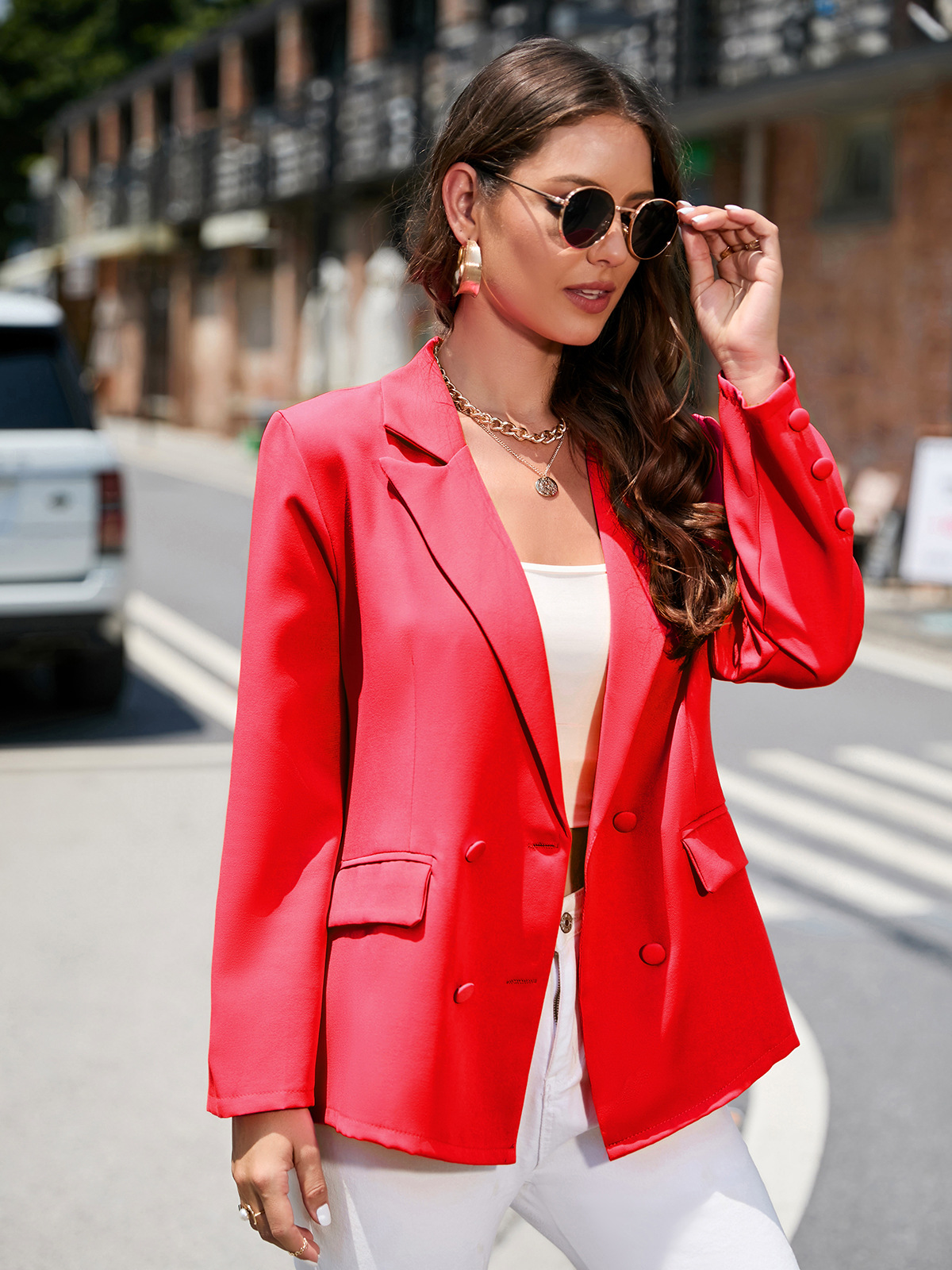 Women Clothing Autumn Winter Street Solid Color Collared Long Sleeve Small