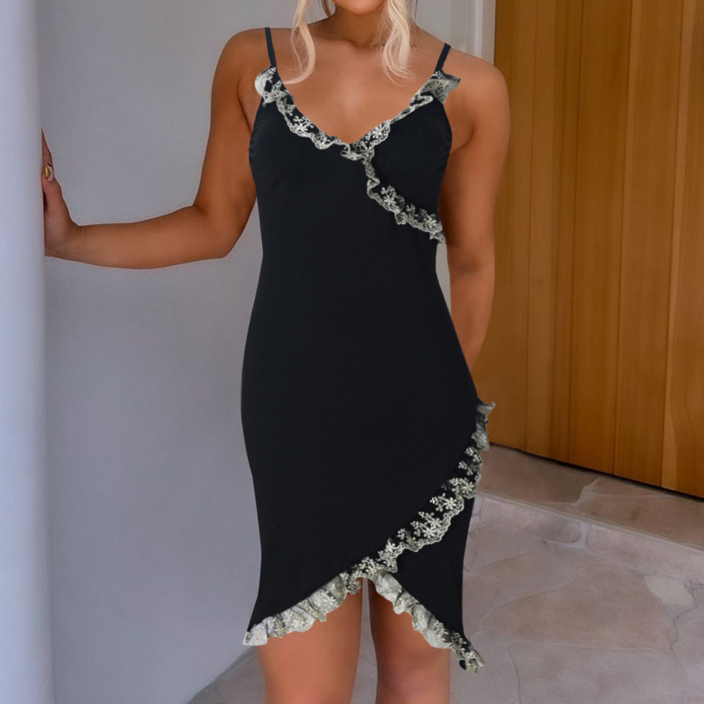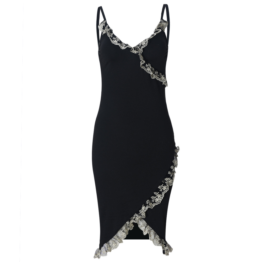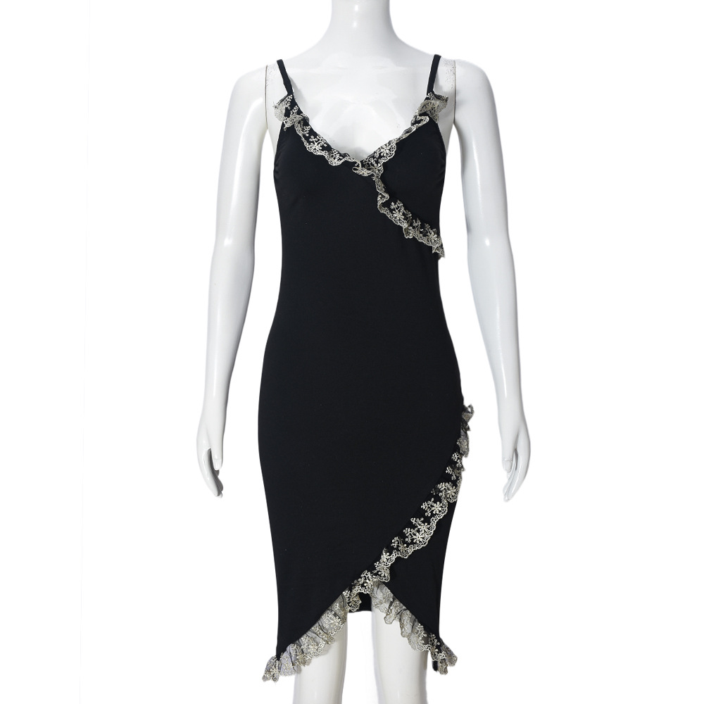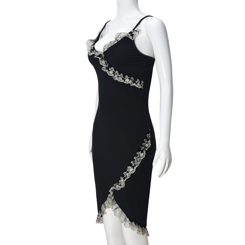 Women Clothing Spring Suspender Lace Stitched Backless Sexy Sexy Jumpsuit
